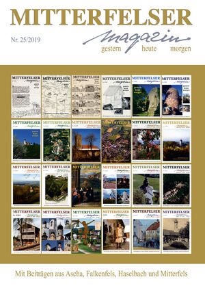 Die erste Nummer des Mitterfelser Magazins (MM) war zugleich Festschrift der 800-Jahr-Feier, eine etwas andere Festschrift, die sich – ganz ohne Werbung und im DIN-A4-Format – mit der Geschichte, mit Denkmalen in Flur und am Weg, mit der großartigen Natur um Mitterfels, mit öffentlichen Einrichtungen und dem Strukturwandel im Ort beschäftigte. Man konnte bei der Nummer 1 – und bei den folgenden Jahresbänden – immer namhafte Autoren gewinnen. Den größten Teil der „Mosaiksteine“ trugen aber die Mitarbeiter des AK Heimatgeschichte zusammen.