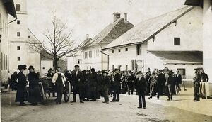Aber es war ein Dorf und kein Markt – wie andere Gerichtssitze. Auch wenn bei Ansichtskarten zu Beginn des 20. Jahrhunderts der Platz an der Friedenseiche gelegentlich als Marktplatz bezeichnet wird. Die früher abgehaltenen Märkte waren eher bescheiden, wie auf der Postkarte „Markttag 1910“ zu sehen ist. Bemerkenswerter ist eher das „Outfit“ der zwei abgebildeten Marktbesucherinnen (links) - wahrscheinlich Beamtensgattinnen.